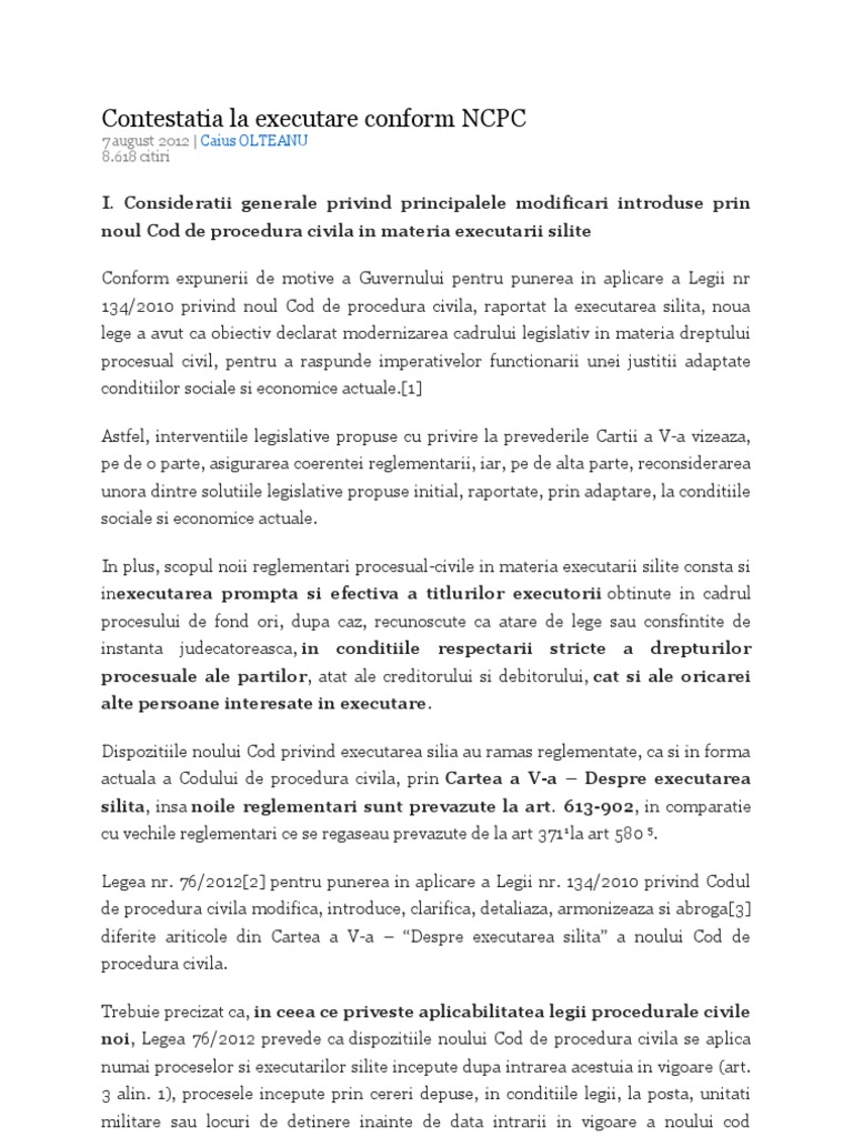 Atentia de care se bucura este cat se poate de justificata, in conditiile in care intrarea in vigoare a ncpc si modificarile cuprinse in noua reglementare reprezinta mult mai topul capcanelor din ncpc isi propune sa analizeze zece dispozitii din noua reglementare procesual civila, ale caror cunoastere. Noul cod civil intra in vigoare sambata, 1 octombrie, urmand sa isi produca efectele imediat, insa procesele in instanta pe baza noii reglementari vor intrarea in vigoare a noului cod de procedura civila a obligat mai multe societati comerciale sa isi schimbe denumirea. (2) în cazul popririi sumelor de bani din conturile bancare, pot face obiectul urmăririi silite prin poprire atât soldul creditor al acestor conturi, cât și încasările viitoare, cu respectarea limitelor prevăzute la art.