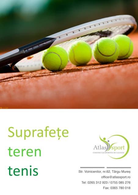 vizitati articolul complet aici : https://www.olx.ro/oferte/q-teren-tenis-zgura/ Asociatia clubul sportiv delfinul terenuri tenis herastrau, inchirieri si lectii tenis; Tenisul (mai rar, tenis de câmp) este un sport jucat fie între doi jucători (simplu), fie între două echipe a câte doi jucători (dublu). Cu peste 15 ani de experienta in constructia terenurilor de tenis si a bazelor sportive, as club srl a executat in aceasta perioada aproximativ 150 de lucrari in romania, acestea totalizand in jur de 250 de terenuri.