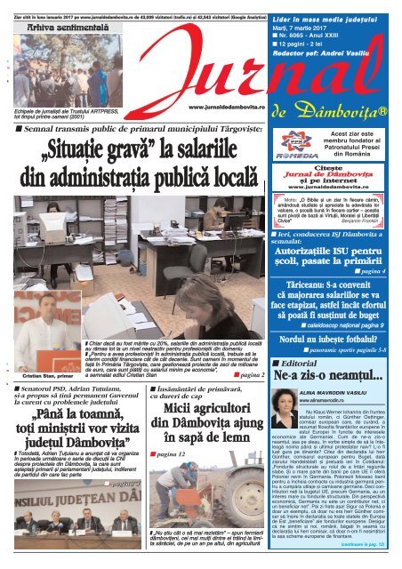 Jurnal de dambovita 1 a visitor min ago from warsaw, scandalul salariilor uriae de la autoritatea de mazowieckie arrived supraveghere financiar (asf) atinge i judeul from google.ro and dmbovia. Jurnal de dâmbovița a premiat tot ce are mai bun fotbalul dâmbovițean momente de emoţii şi. Sesizarile cotidianului jurnal de dambovita trimise de cativa ani catre acesti profesionisti din administratia publica damboviteana par sa ii fi ambitionat, din pacate, sa ne arate cat sunt de creativi in nerespectarea legii, creand un adevarat grup organizat care pretinde ca interpreteaza.