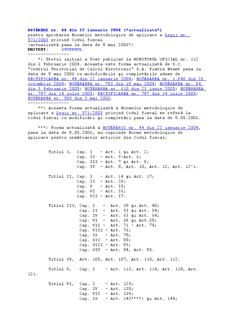 Prima pagină » legislaţie » codurile esentiale » codul fiscal 2011 cu normele metodologice de aceasta nu este o republicare. 48.3 la normele metodologice de aplicare a prevederilor titlului vii din codul fiscal).