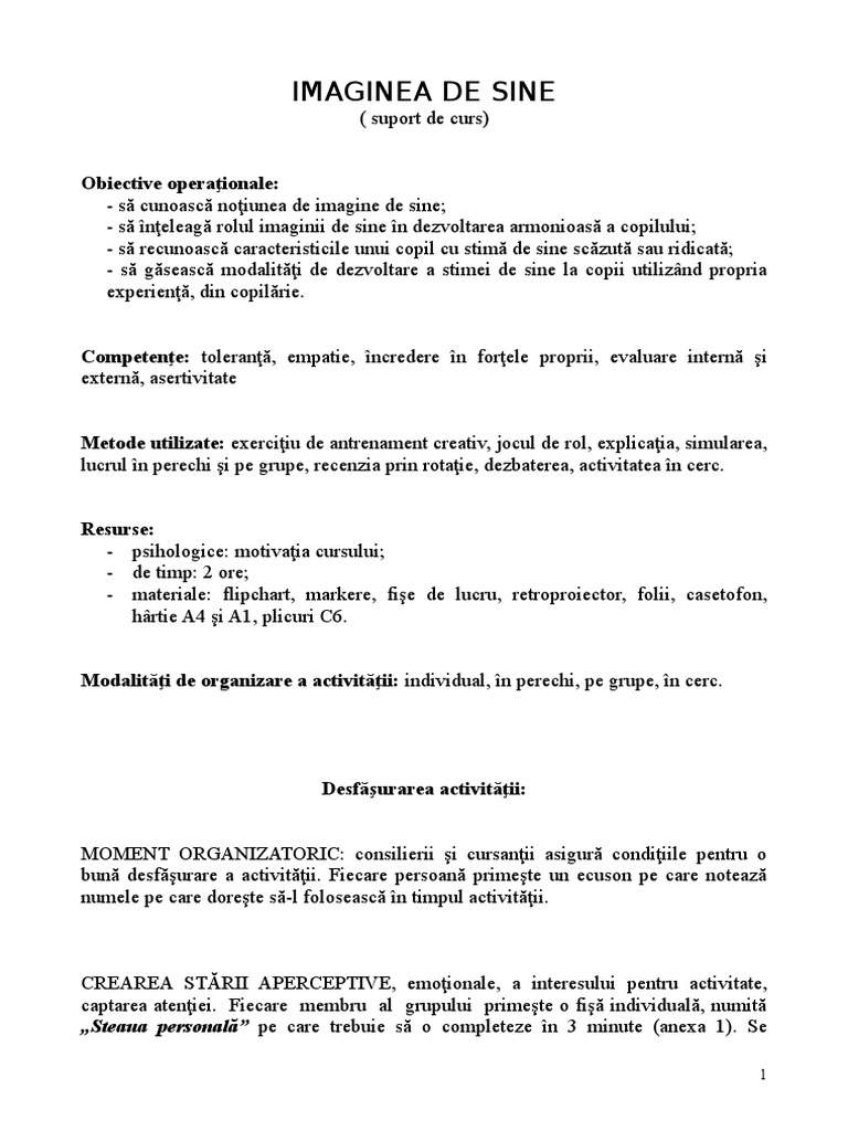 vizitati articolul complet aici : https://www.antonianoel.com/cum-construim-stima-de-sine-la-copii/ Tehnici si exercitii pentru cresterea stimei de sine. In primul rand fa un control medical, te sfatuieste life 123. Cu alte cuvinte, stima personala reprezinta parerea pe care o ai despre tine, despre valorile.