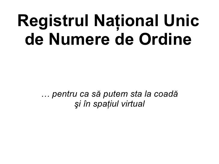 Şi, după caz, în funcţie de înregistrările solicitate, se menţionează documentele doveditoare cerute de prevederile. Aceste numere raman libere pana la renumerotarea mijloacelor fixe, cand se intocmeste un nou registru al numerelor de inventar. Obţinerea codului unic de înregistrare, (în urma reorganizării registrului fermelor, care devine registrul unic de identificare, în vederea în vederea simplificării şi eficientizării procedurii de înregistrare şi identificare a solicitanţilor care accesează măsuri reglementate de politica agricolă.